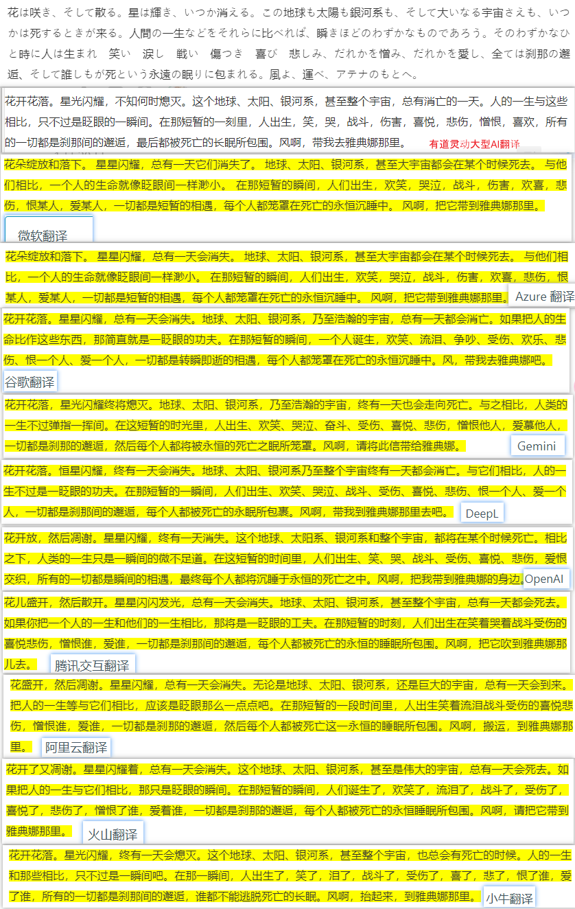 有道,彩云小译,OpenL无法免费使用我就没测。