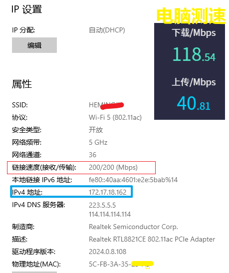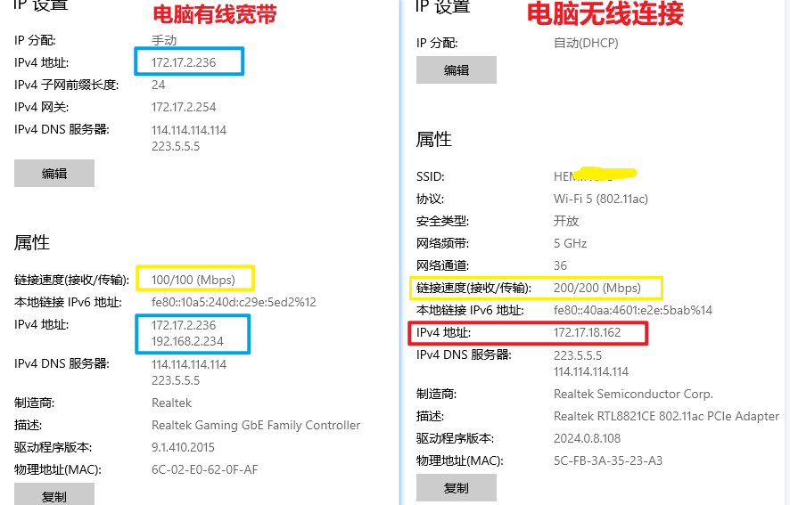 是因为电脑端的wifi速率太慢了吗,我为什么下图的ipv4地址跟cmd里面ipconfig的又不一样了。