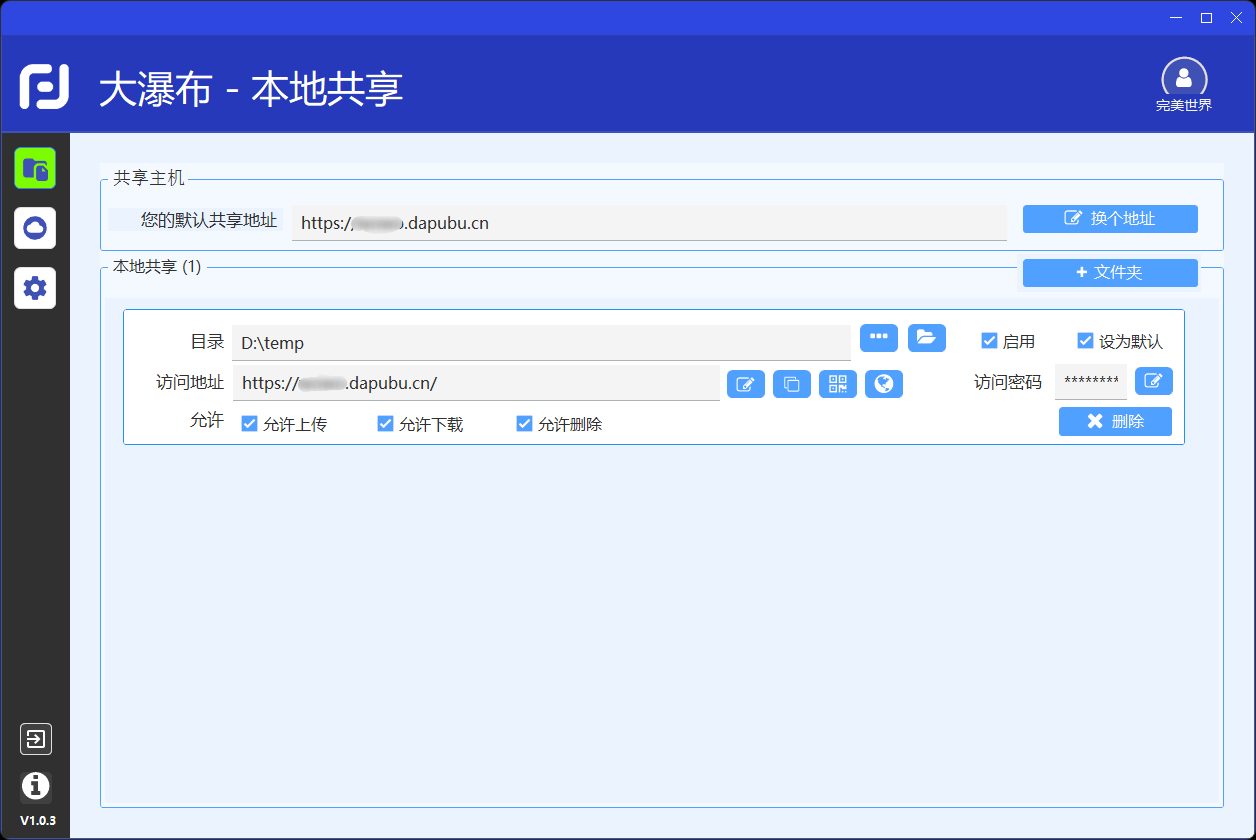 16、可以自定义默认共享地址。例如:https://xxxx.dapubu.cn,这里的xxxx可以自由设置