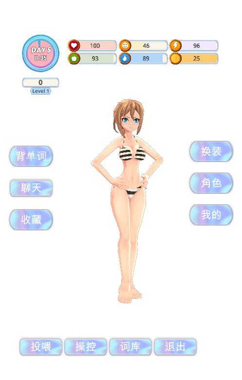 学习=》金币=》养成:通过英语学习和做任务赚取金币。金币购买物品进行投喂。保证AI女友的饱腹度、饮水度、健康度、体力值和心情不为零。