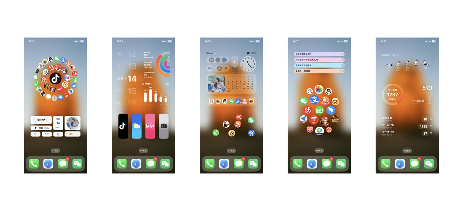 在桌面实现透明小组件后的部分效果图预览: