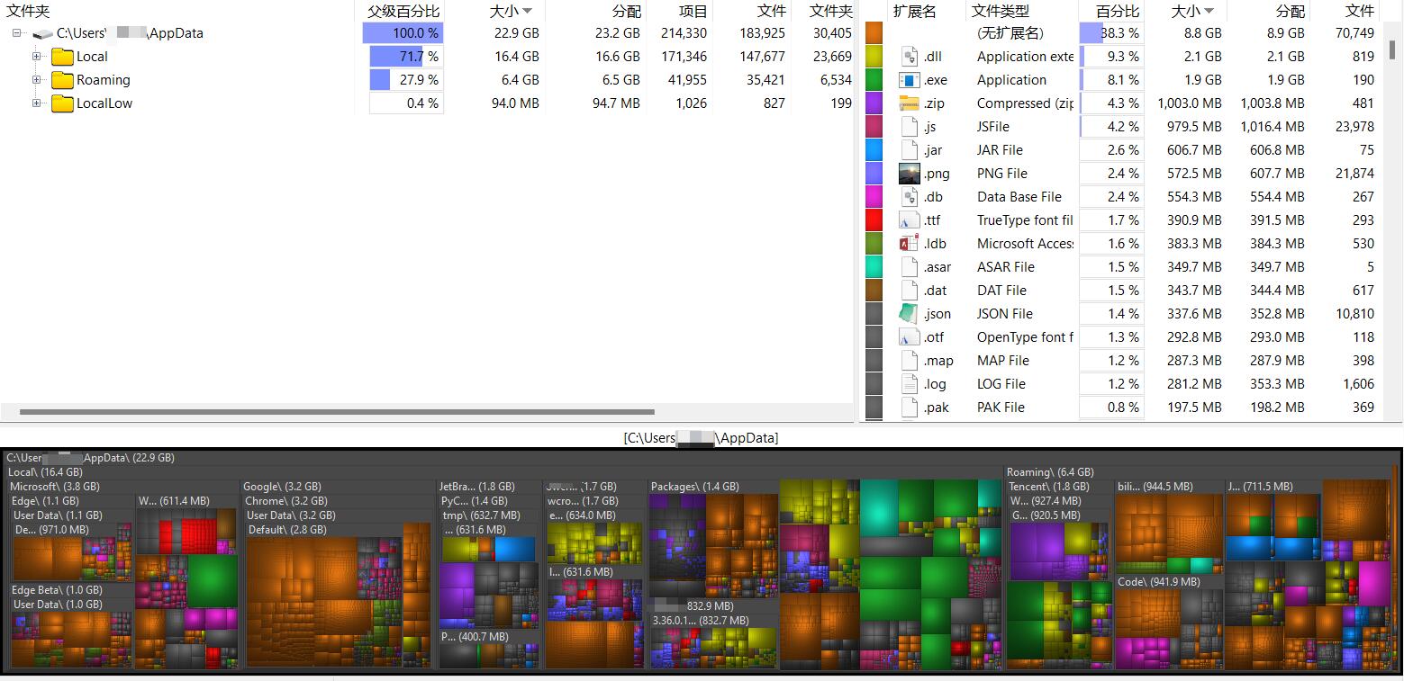 同{喜欢用WizTree手动检查空间占用}用户,每次备份系统都要清理很多臭名昭著的应用;一般都是人工清理,去年写了个小node程序,只是读取列表,然后根据列表自动去清理对应目录而已,也就是仅仅搞了个批量删除,并没有自动识别AppData里哪些是无用的缓存这样的功能。你要是需要我就发出来,懒得打包了(