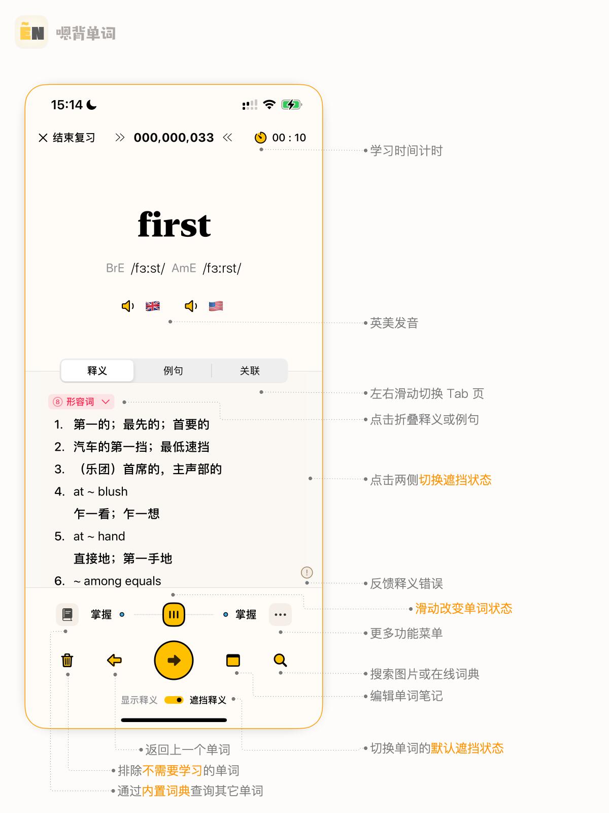嗯背单词本次更新带来了日语词书和五十音学习功能,同时修改了产品的试用方式,和墨墨一样优化为了学习次数限制