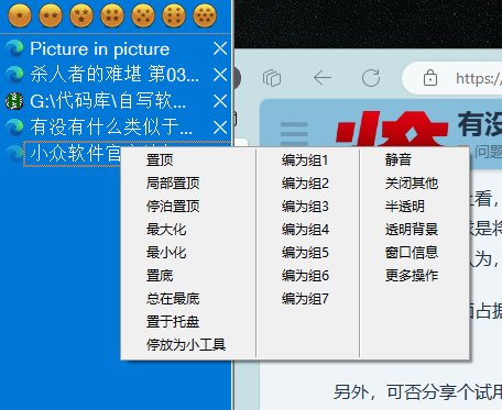 从你分享的截屏上看,我觉得有一个明显的区别。你的分组方式是一次只显示一个组的窗口,而楼主的需求是将所有窗口在一个平面内并且分组平铺,这样可以同时看到多个组的窗口标题。我个人认为,一次看到所有窗口标题会更加方便实用。