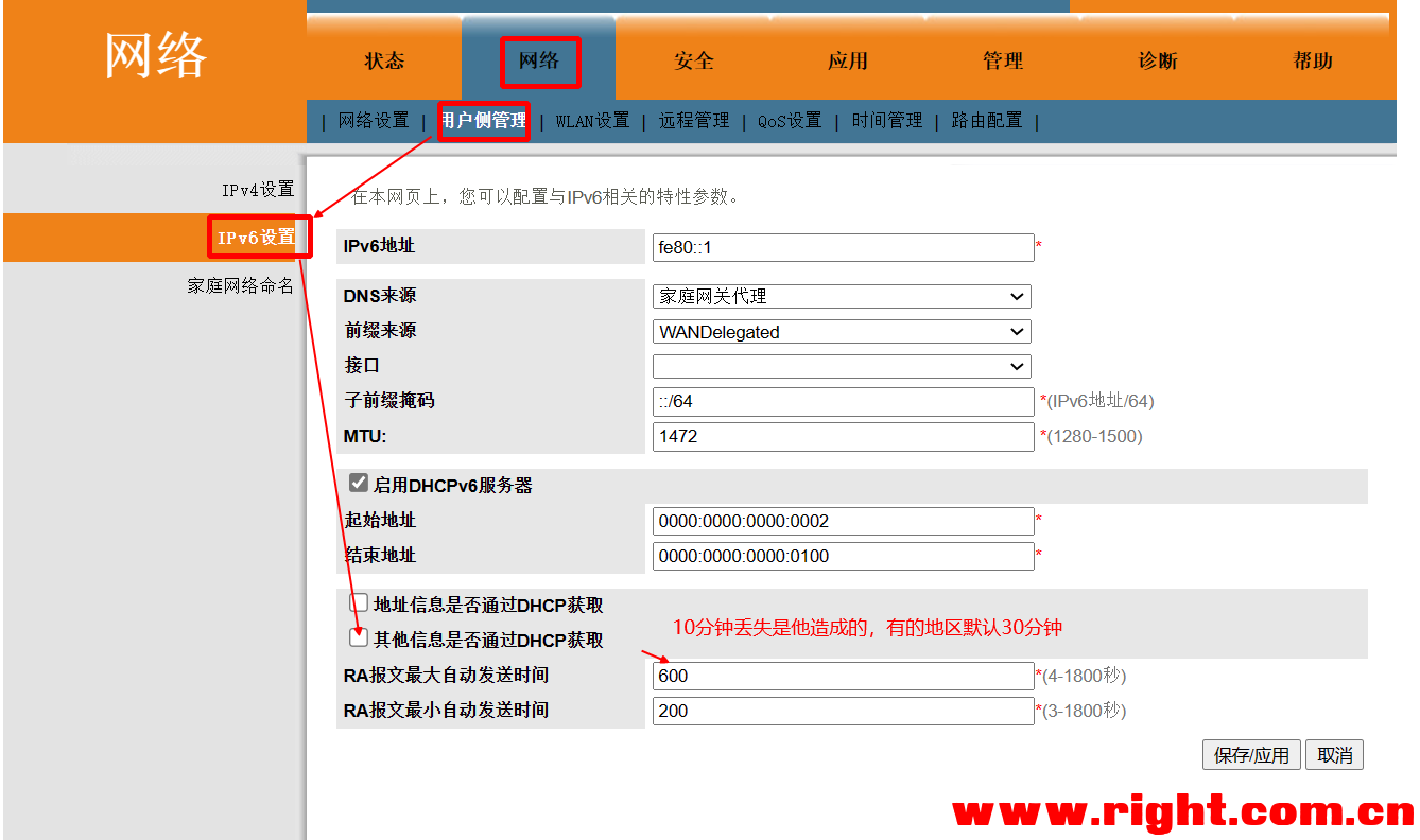 ipconfig /renew6可以获得IPV6网关,是不是它的原理不同?搜罗了网上已有的资料,是怎么造成的暂时无法清晰定位,恩山无线论坛的帖子《江苏电信ipv6每隔10后ipv6网关消失解决办法》给出了以下3种方法: