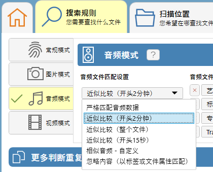 另外音乐查重还有个重复音乐查找工具,支持查重时忽略元数据中一些特定的字段,某些时候很有用。