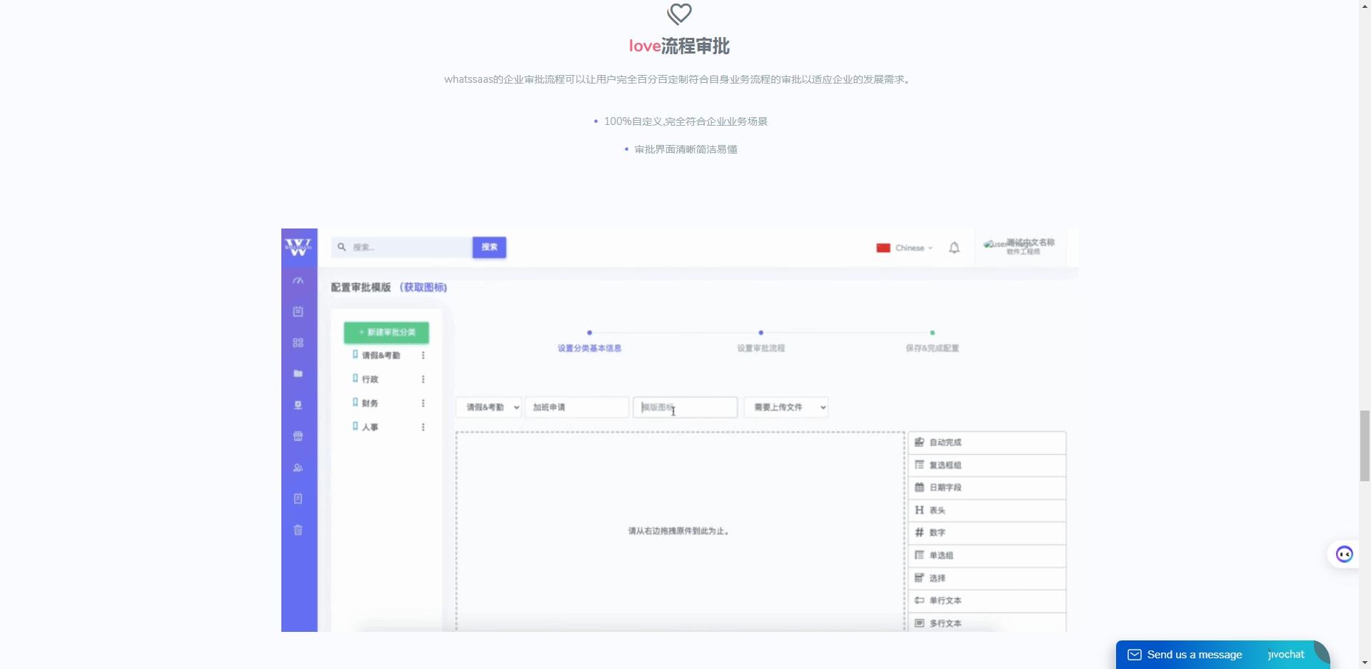 我们支持完全自定义流程审批,客户可以根据自己公司的业务场景,通过拖拽的形式设计出100%符合业务的审批流程