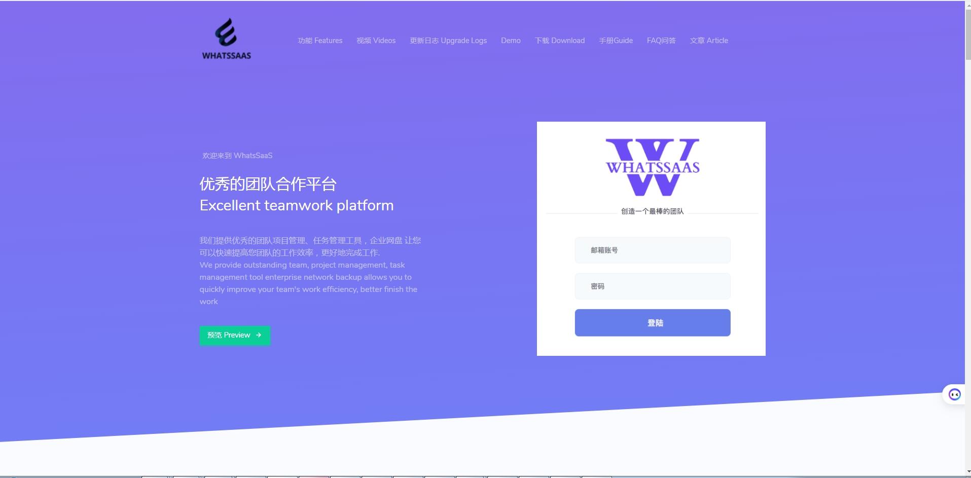 whatssaas的项目管理功能为团队提供了一个强大的协作平台。它可以让您创建项目,并为每个项目分配任务,以确保每个人都知道他们需要做什么。此外,团队成员可以通过whatssaas实时交流,分享文档和文件。此外,whatssaas的项目管理功能提供了一个直观的任务列表,帮助您跟踪团队的工作进度。