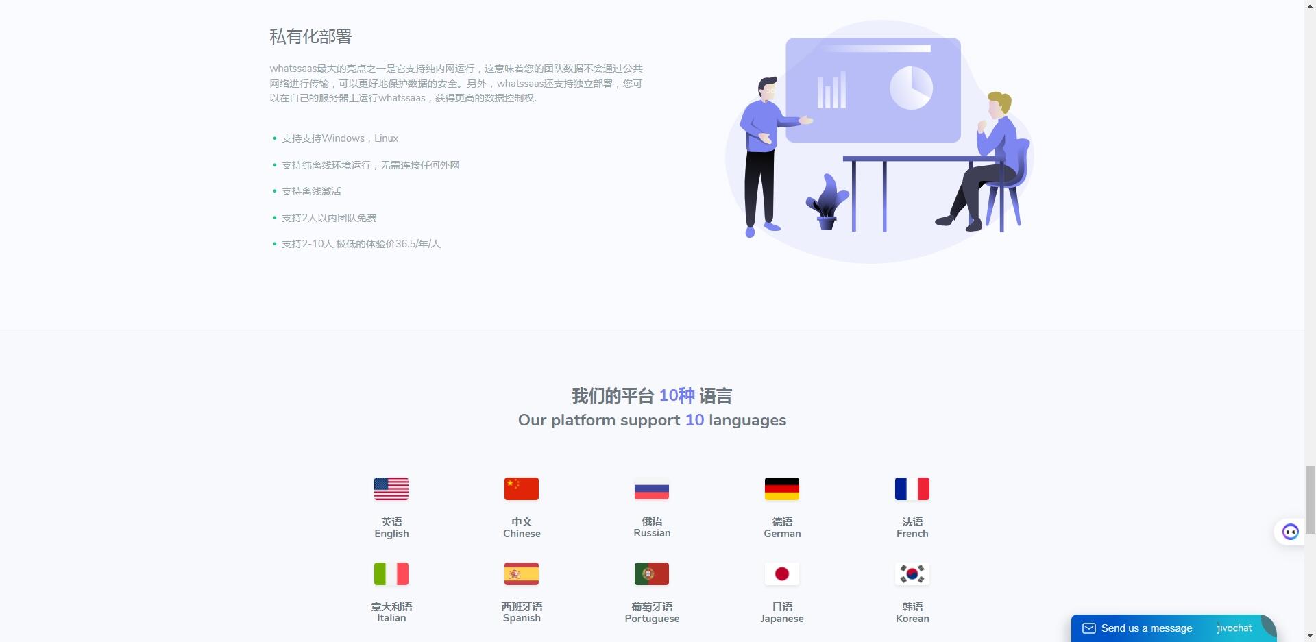 whatssaas最大的亮点之一是它支持纯内网运行,这意味着您的团队数据不会通过公共网络进行传输,可以更好地保护数据的安全。另外,whatssaas还支持独立部署,您可以在自己的服务器上运行whatssaas,获得更高的数据控制权。