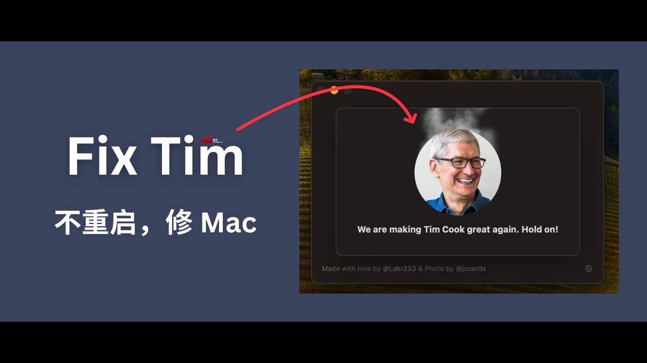 Fix Tim 这个名字很奇怪,但 macOS 系统的各种奇怪 bug 也很莫名其妙,总需要重启才能解决,包括但不限于输入法、音频中断、AirDrop 故障、Wi-Fi 故障、无响应的软件、iCloud 同步问题等。于是每次都必须使用「重启重装重买」大法中的第一法,才能解决问题。@Appinn