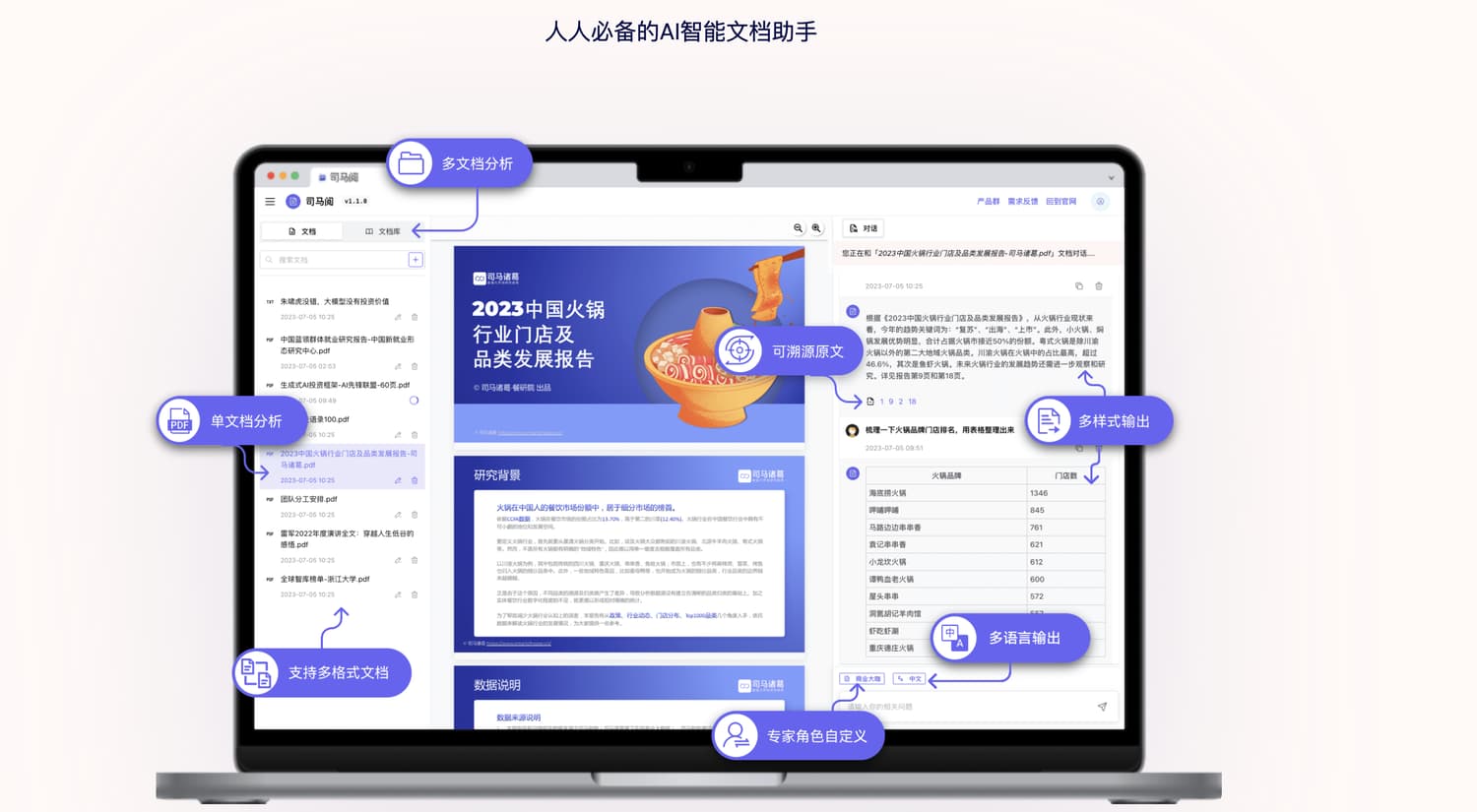 看司马阅官网,和kimi相比,有溯源原文、多文档分析以及专业应用场景方面的功能。尽管它似乎在一些独有的功能,我没有实际使用,原因是页面数量限制的问题,很难找到那么短的 PDF 电子书