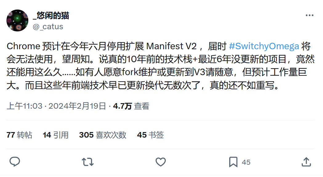 Proxy SwitchyOmega 的作者可以说一句 “在座各位都是垃圾”了!