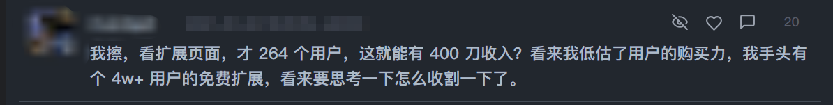 又看了下官网,不免感叹,结合之前在 v2ex 看到的帖子,帖子大意是,有公司收购 OP(原贴主) 写的 Chrome 扩展,扩展有 5 万的周活跃用户,1 个活跃用户 10 刀,OP 还有嫌给少了的想法,当然我无法保证内容的真实性,但也见过类似的