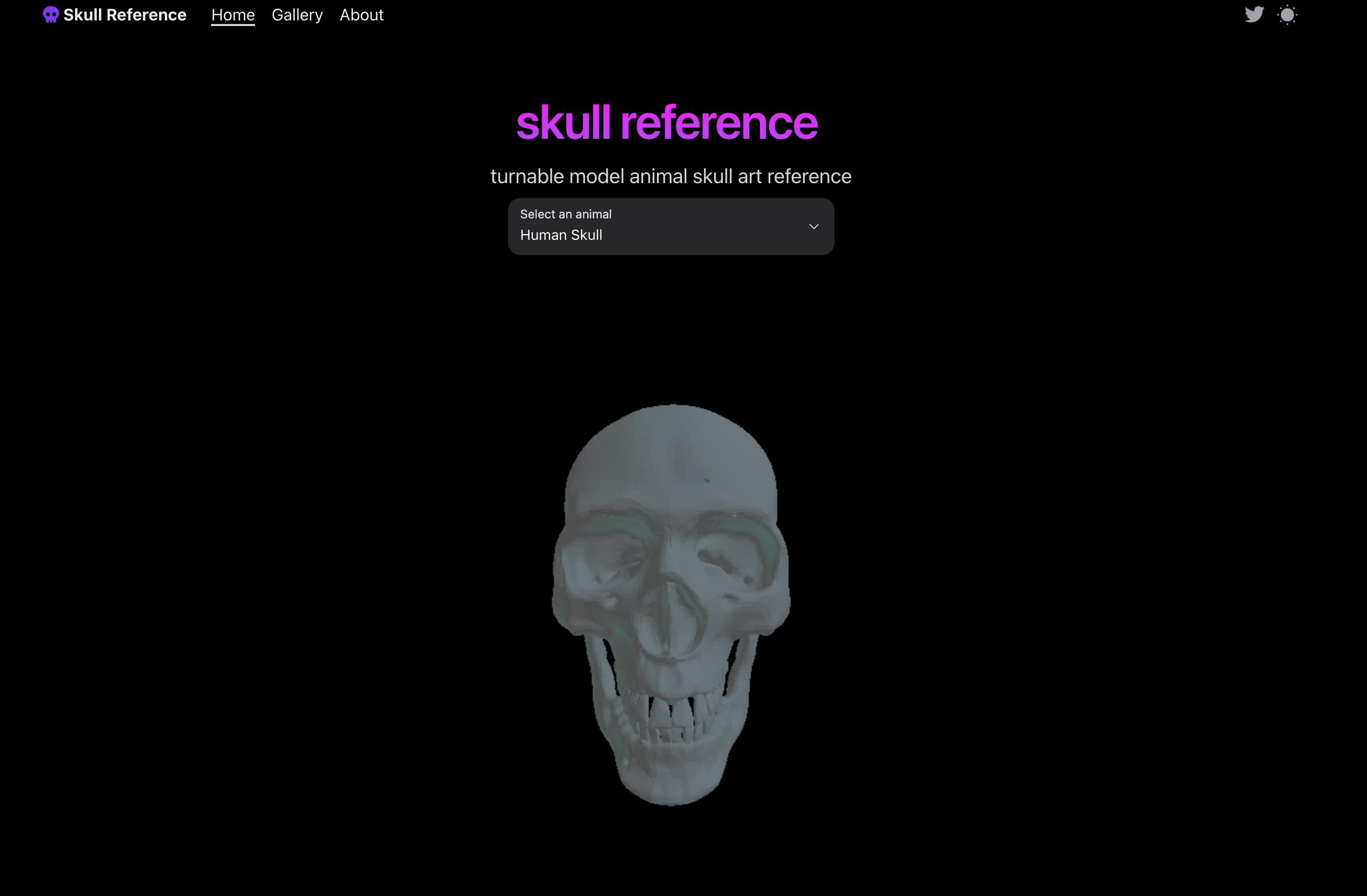 这是一个「3D可旋转动物颅骨模型参考」网站