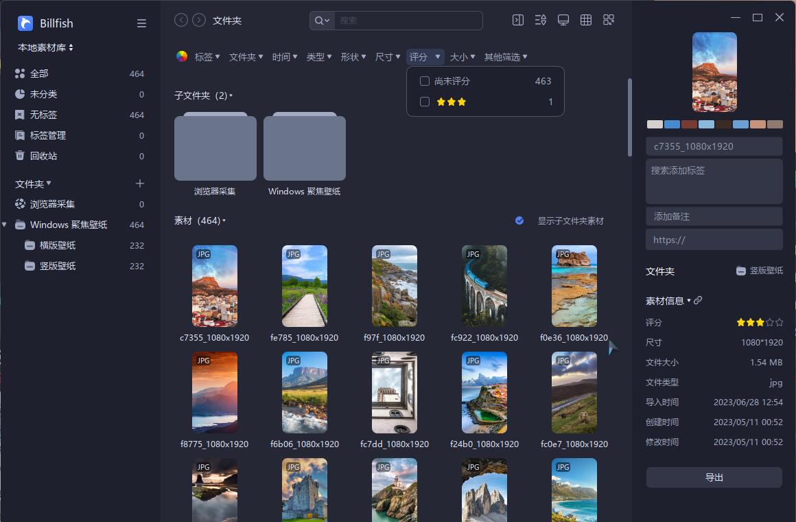 下图是 Billfish,先评分,后筛选