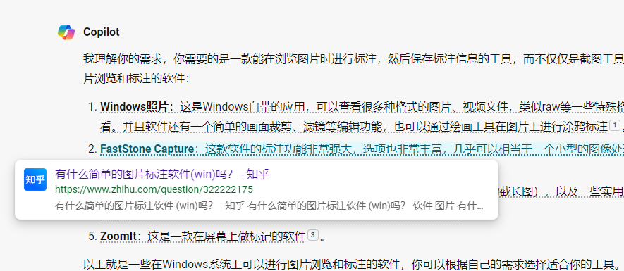 问了三次必应 Copilot,两次说了它的回答不对,依然是给出三次完全一样的没用回答:HoneyView、Image Glass、XnView、IrfanView和微软看图……