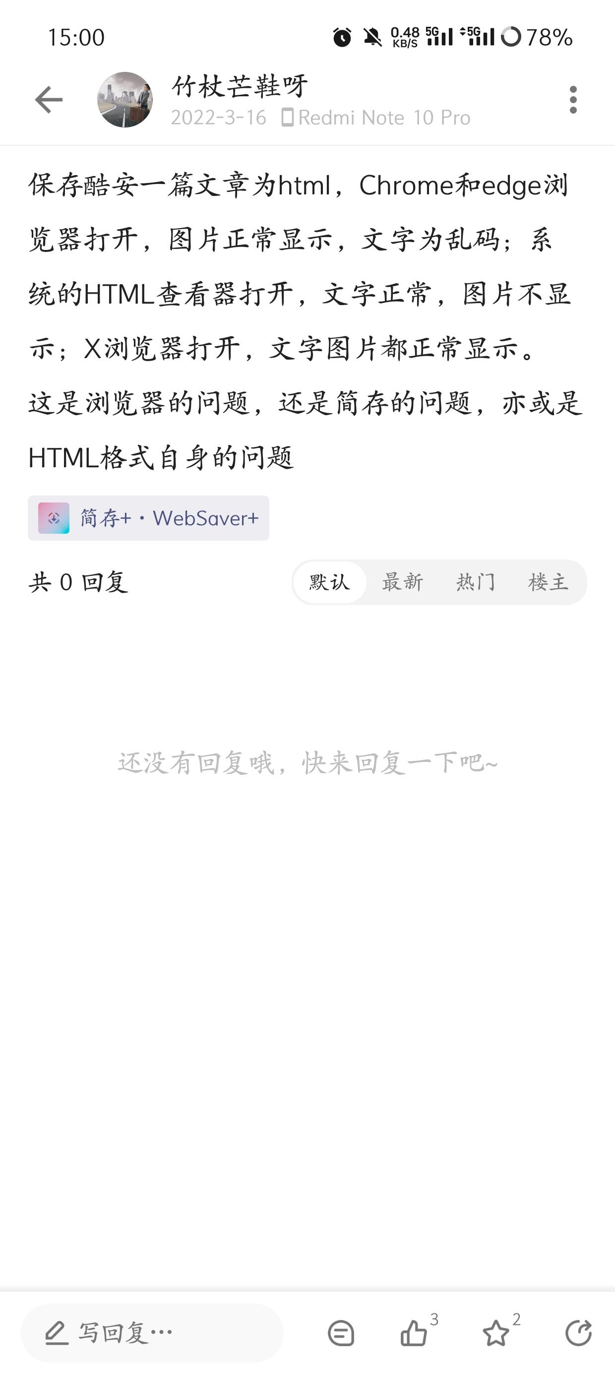 此问题关于网页保存,怎么能保存酷安图文为html,能有评论就更好了