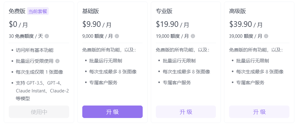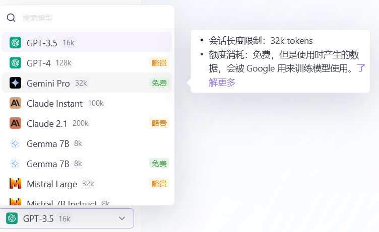 (注册账号30 免费额度 / 天) 部分模型如gemini pro,Gemma 7b等免费使用,以 GPT-3.5 为例,消耗 1 额度可以向 AI 提约 680 英文单词的问题,或者得到约 340 英文单词的回答,GPT-4消耗略大。个人娱乐够,玩玩就行。价格有些贵,薅点羊毛玩玩就好了。