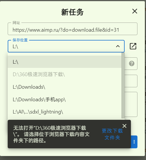 我找到了Chrono下载管理器, 但是这款下载器选择下载路径时, 只能选择浏览器设置的下载路径