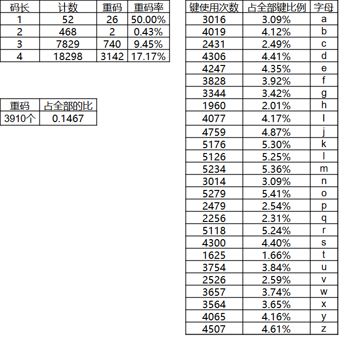 既然话都说到这里了,另附一份您要的郑码码表及我个人的统计在此(注,为2015年版本)。