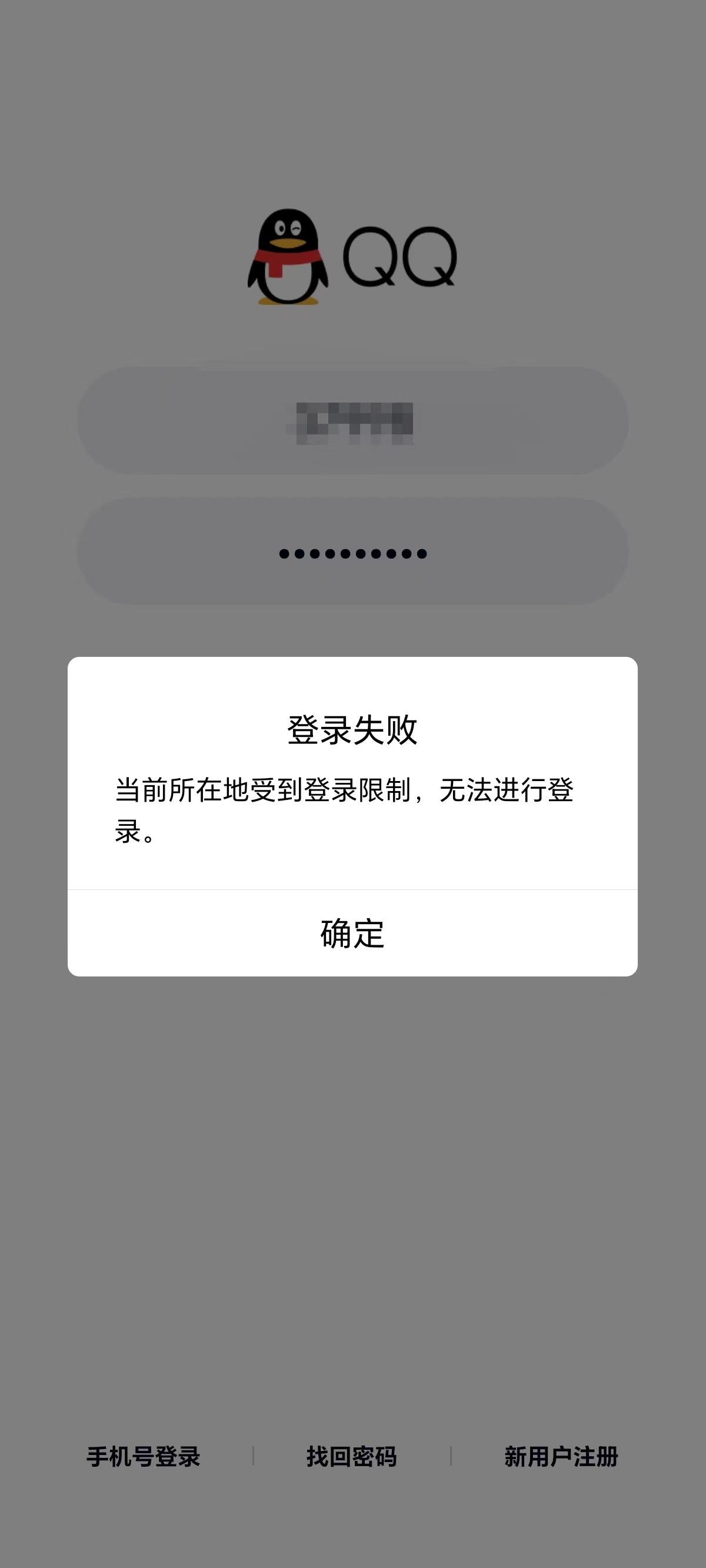 QQ号登录时输入密码,或手机号登录时输入验证码后,弹出提示窗口: