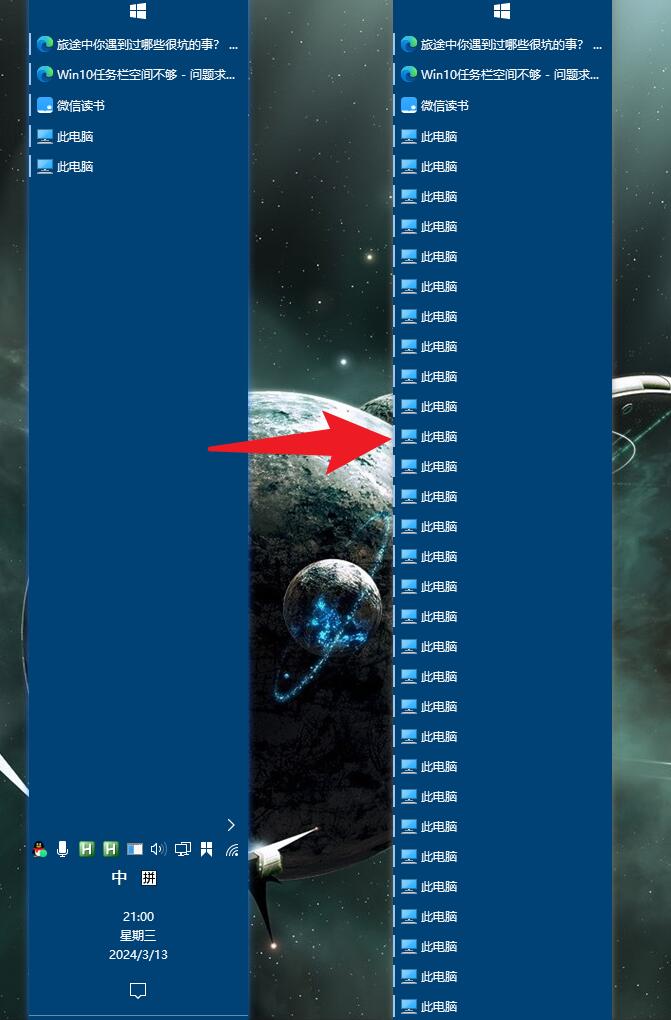 横向任务栏应该不止75个,可以解锁任务栏拉到一半屏幕的高度,放300个应该没问题