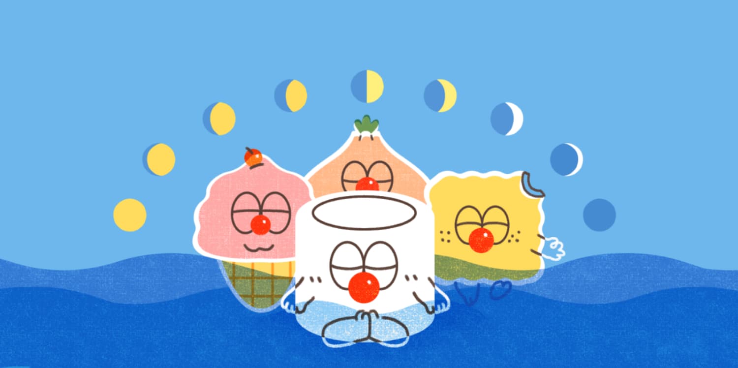 在呼吸练习中,我们给『罐头朋友』每个角色都有一种独特的呼吸练习方法,这些角色代表了不同的生活状态和情绪。例如,“罐头”灿弟使用罐头与海浪形象,海浪的音效中,给呼吸带来深邃的宁静;而“雪糕小姐”丽子则一直让水果平衡,通过意象化的视觉呼吸来缓解压力和焦虑。(本文最后有我们四个角色的介绍)