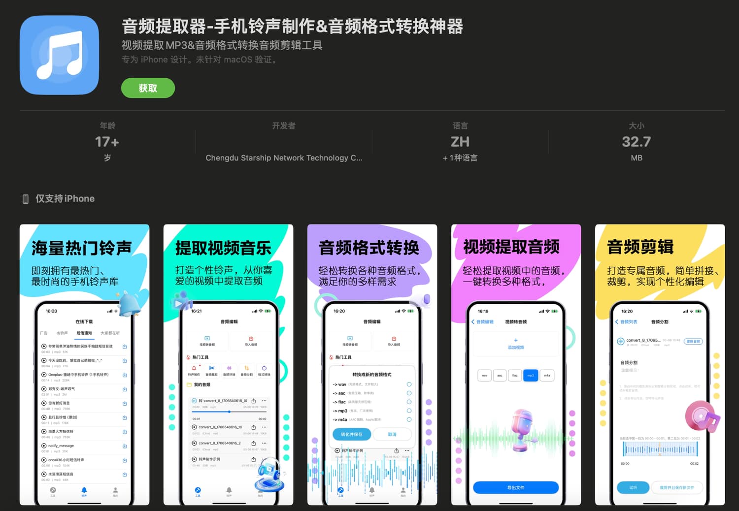苹果下载地址:https://apps.apple.com/cn/app/音频提取器-手机铃声制作-音频格式转换神器/id6478204245