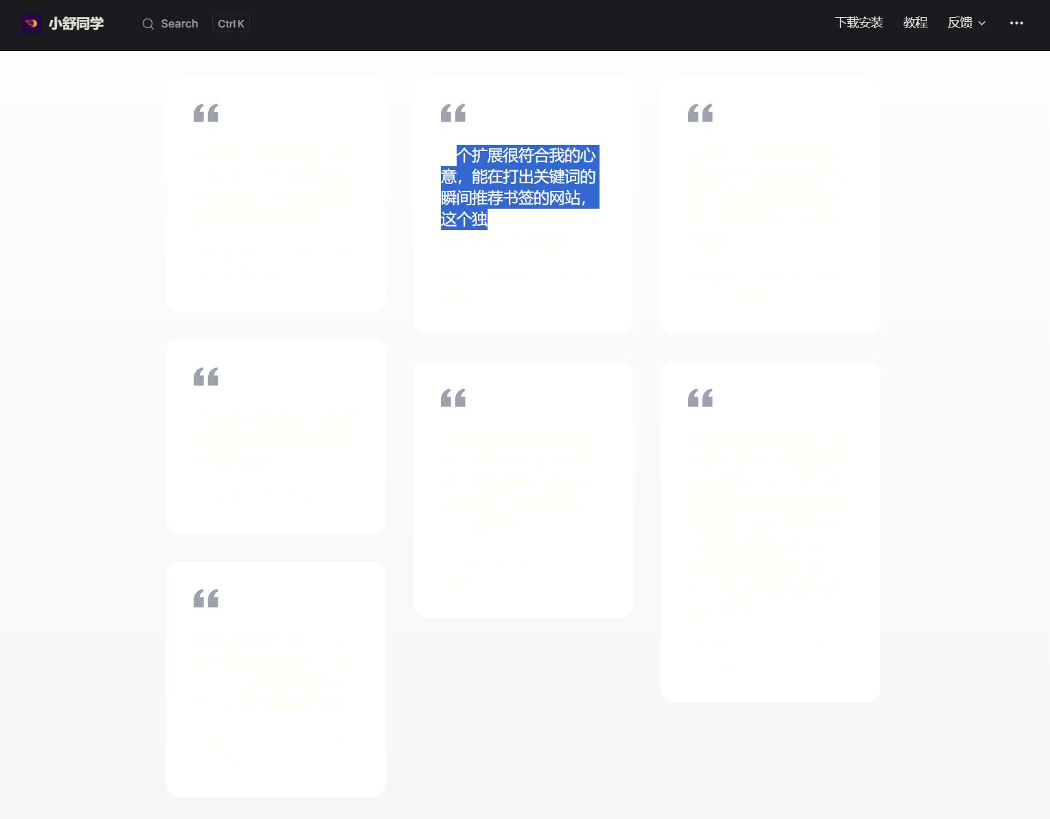 小舒同学以流畅和直观的用户体验,帮您重新组织您的在线生活。我们专注于舒适的交互设计,将您的收藏夹以一种对您有意义的方式进行组织。