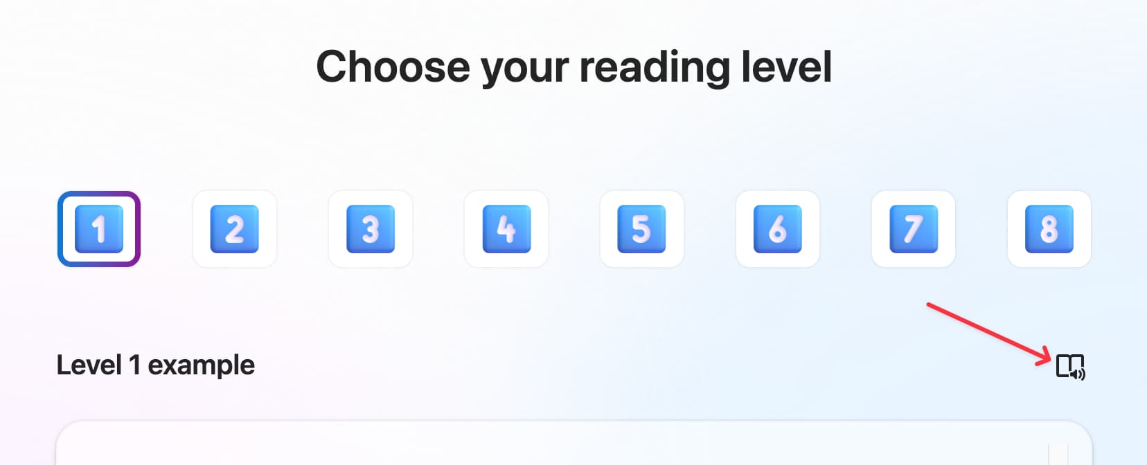 打开后点击 Start Reading 按钮,选择你想阅读的内容,包括 AI 生成一段故事、选择一段话、自己输入: