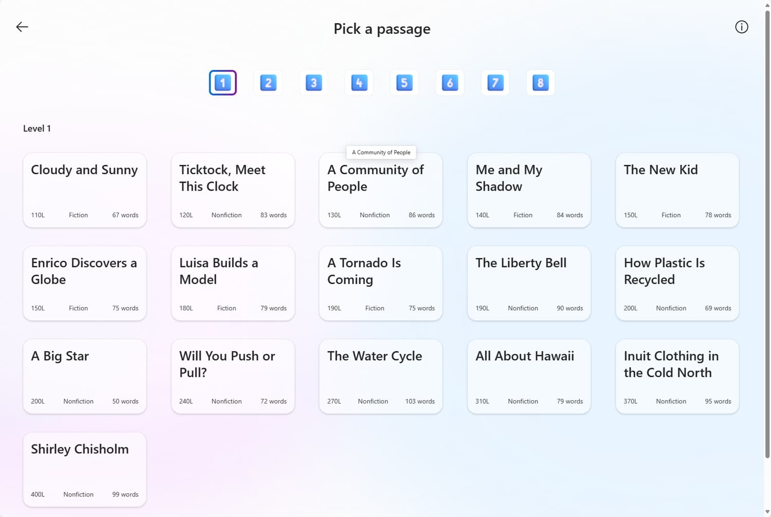 读者能自如地阅读以不同主题为重点的复杂文章。词汇、句子结构和主题通常更具挑战性。