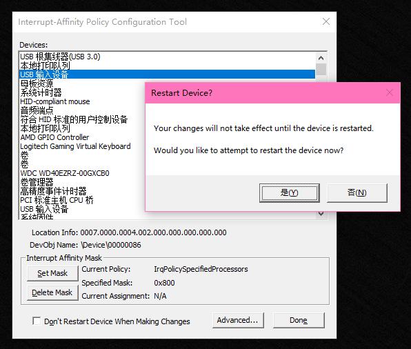看起来这个会将所有的usb设备给重启一次?我还没有尝试