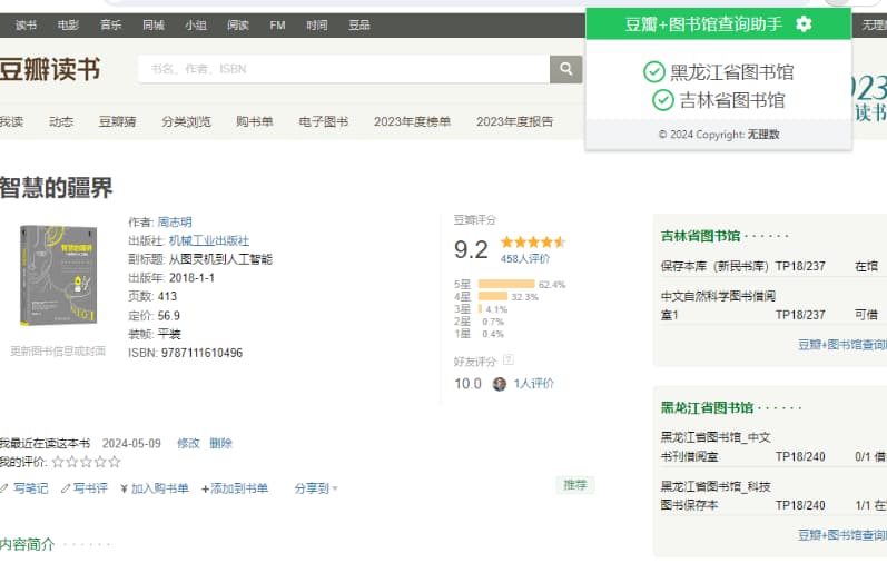 此插件是浏览器插件,目前支持chrome,firefox 。让用户在浏览豆瓣网站时,轻松查看图书馆的藏书情况。 它提供了图书所在馆、编码、可借数量等信息, 让用户更便捷地找到需要的图书资源。省去了单独查询图书馆的步骤,让图书查询变得更高效便捷。