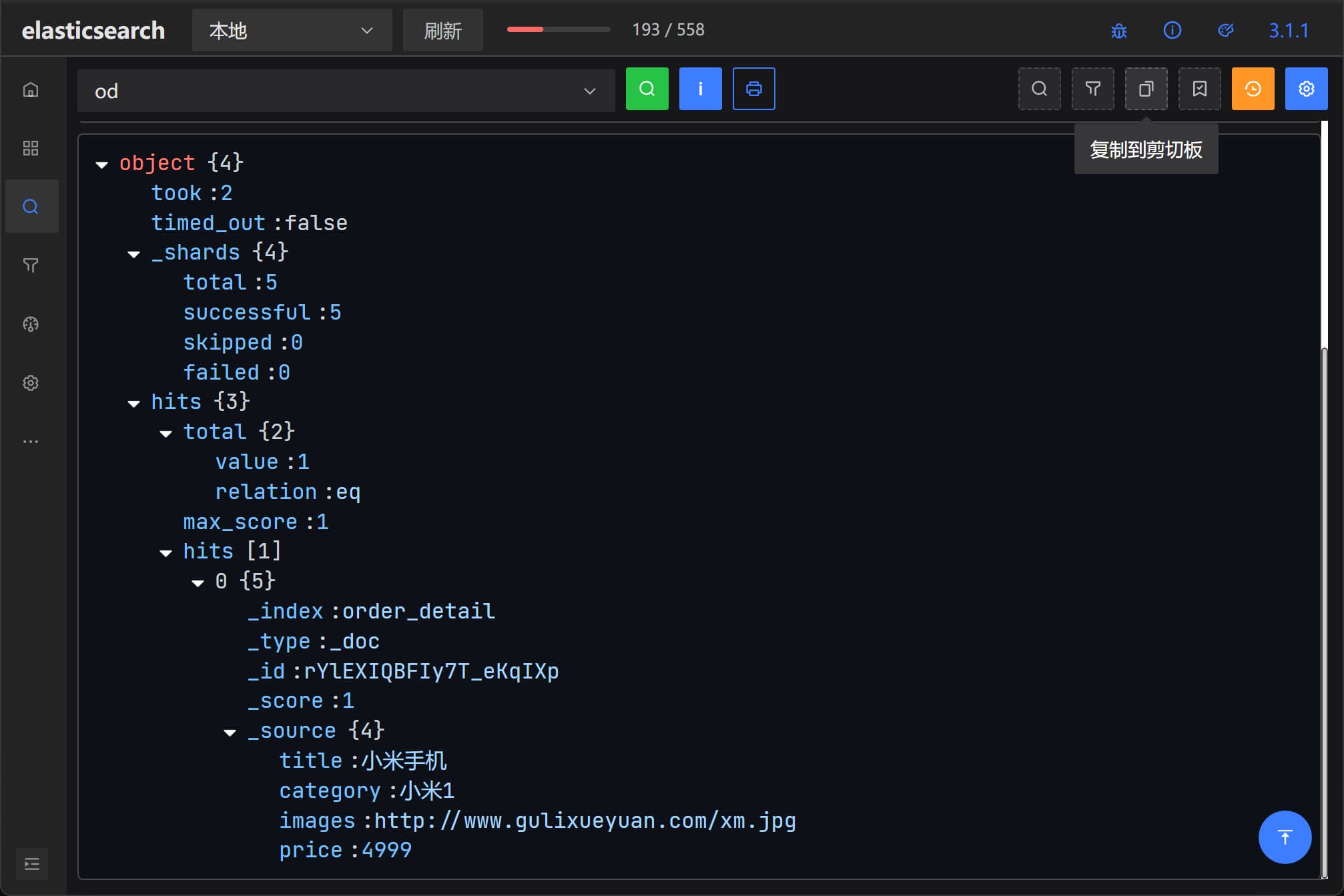 除此之外,es-client还提供了一键复制查询结果的复制按钮,方便用户将查询结果快速复制到剪贴板中,便于粘贴和分享。