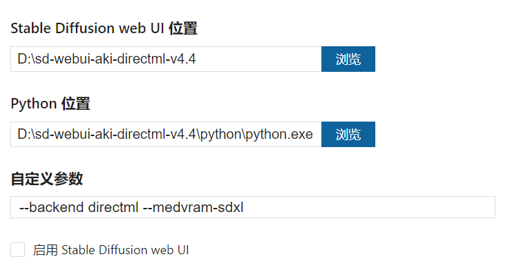 0.11.0 版本已支持自定义 web UI,下边是使用秋叶 directml 整合包的配置示例。