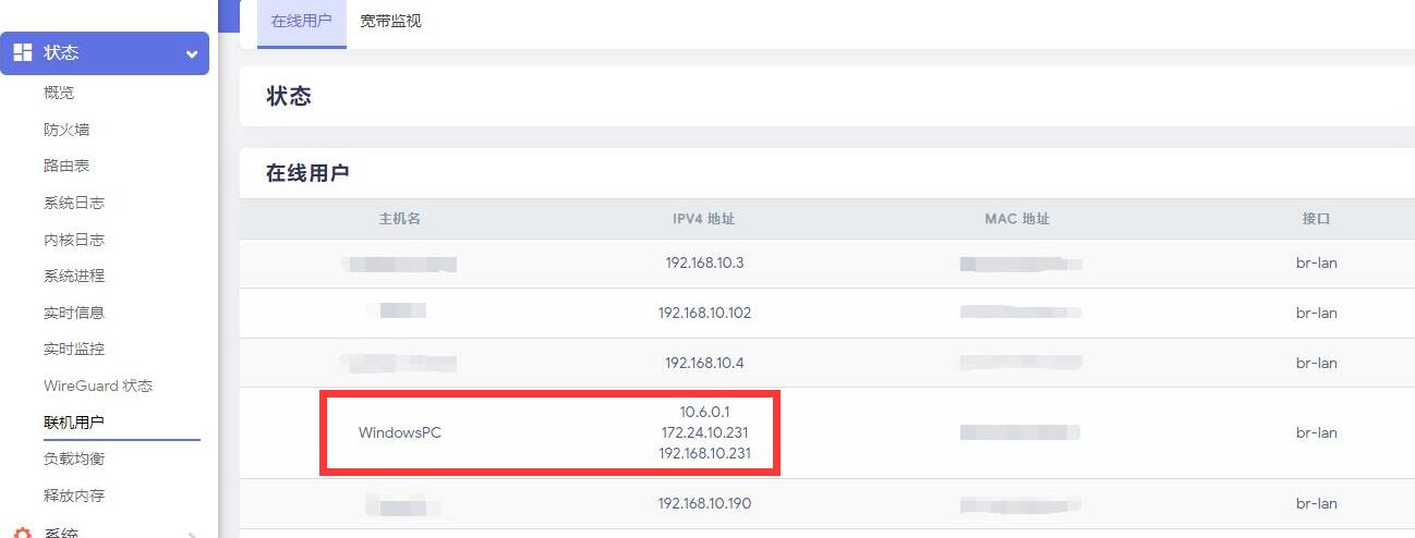 当那台运行加速器软件作为网关的Windows启动加速的时候,在路由器后台上是看到这台Windows是注册了相关的IP地址了的,如下图: