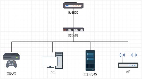 家里的网络结构比较简单,就是扁平化的结构,没有二级路由(几个无线路由也都是配置成AP模式直让终端直接接受主路由管理),拓扑图如下: