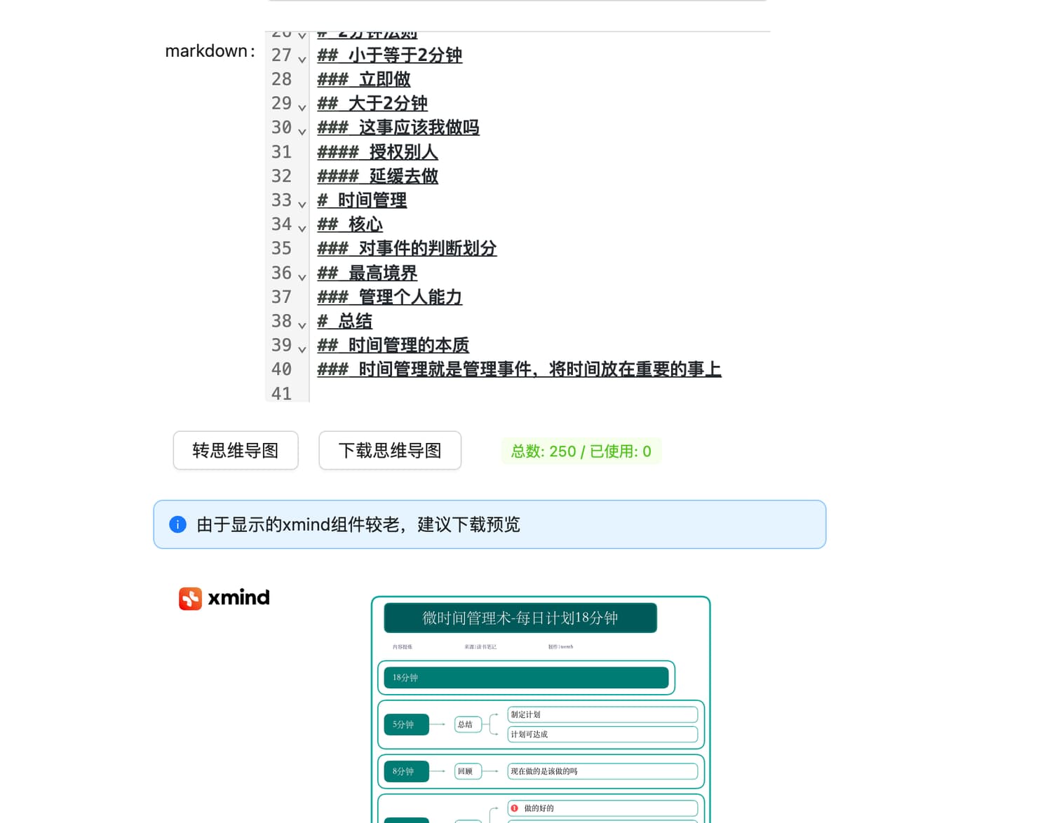 可以快速的将markdown转成竖屏思维导图,并提供下载