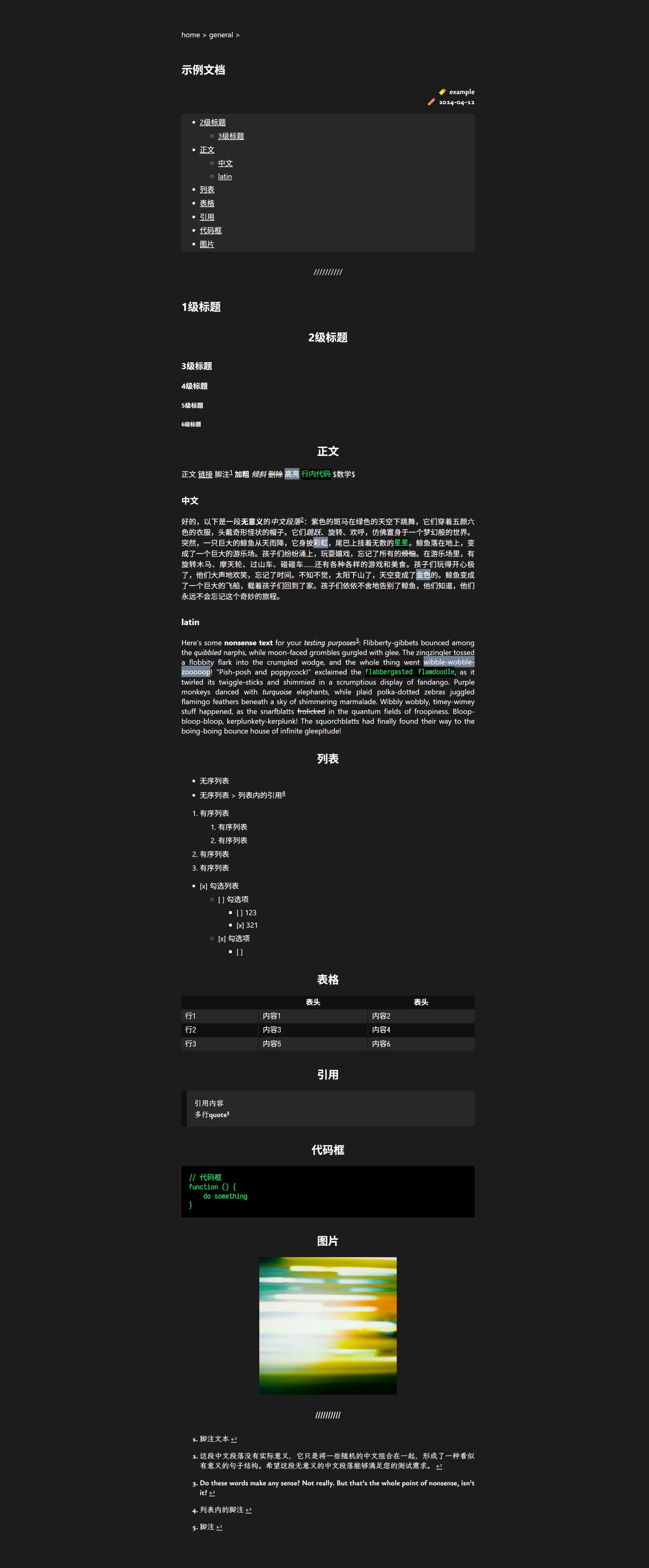 - 自托管webfont,优化中文显示。针对通用内容、文学性内容、元数据/引用/注释、表格/代码设计了了四个层次的字体组合