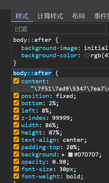 F12打开控制台,找到网页元素的after那项,取消content的勾选