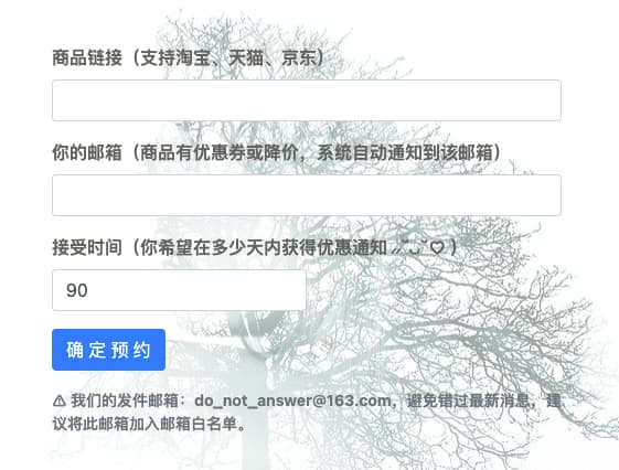 没有优惠券的商品可以一键提交预约,程序 24 小时监测,有优惠信息就及时发布到你的邮箱。