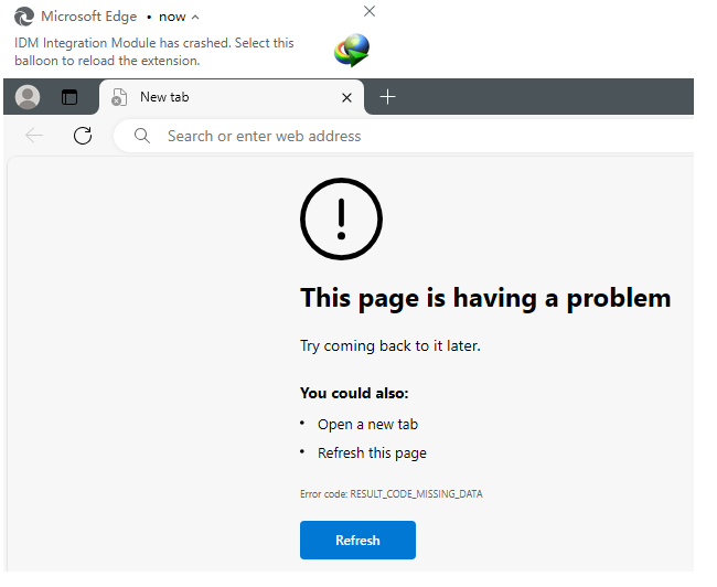 那你就把崩溃的IDM扩展关了,或者暂时先卸载IDM再试试