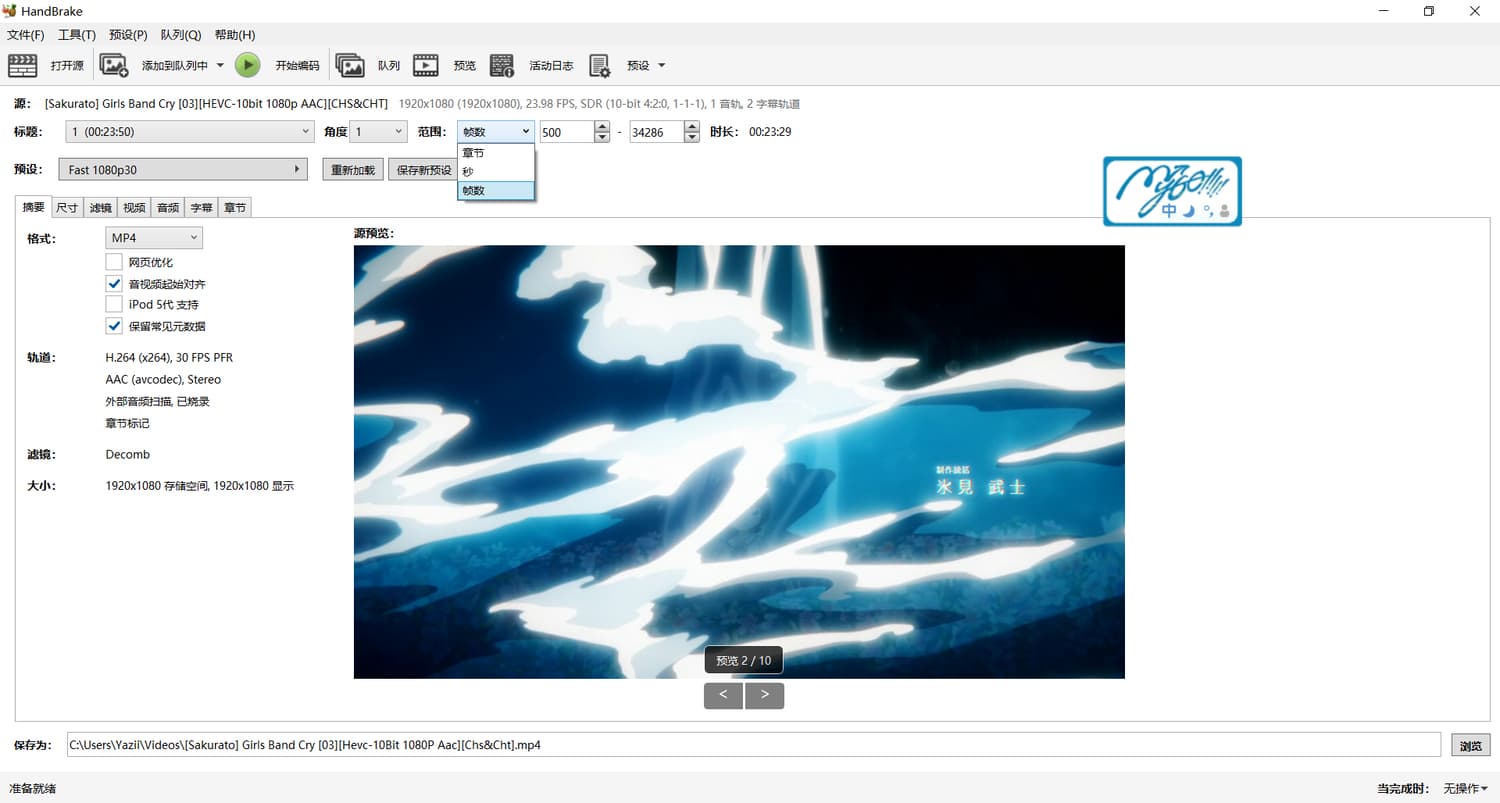handbrake,直接转码视频片段。