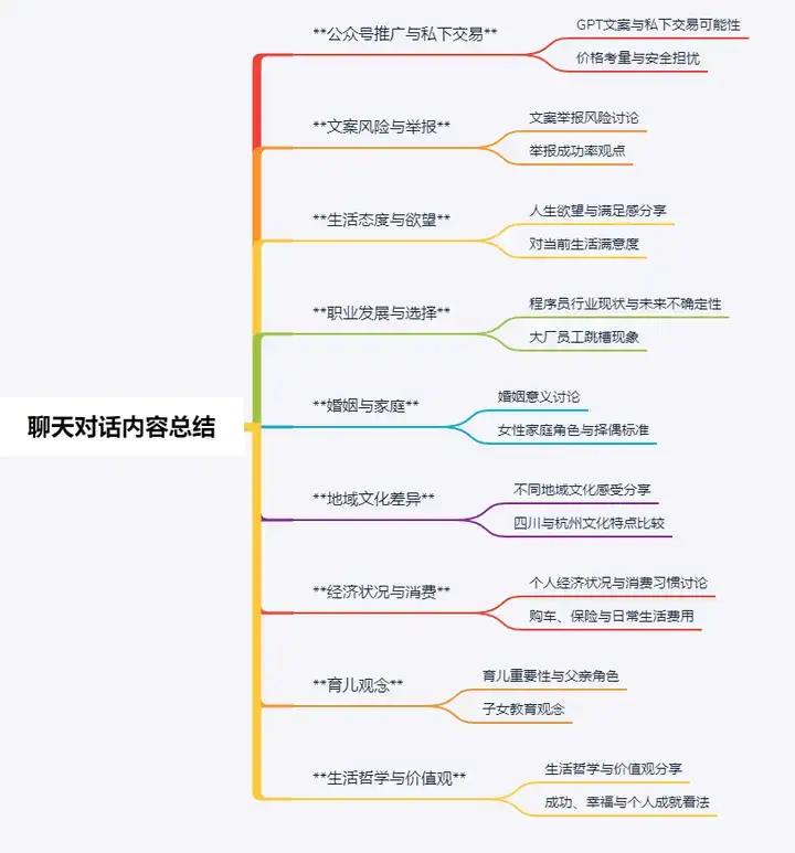 请将以下聊天对话内容的个人观点(必须有观点)进行总结,隐藏聊天者昵称,并以MD格式输出: