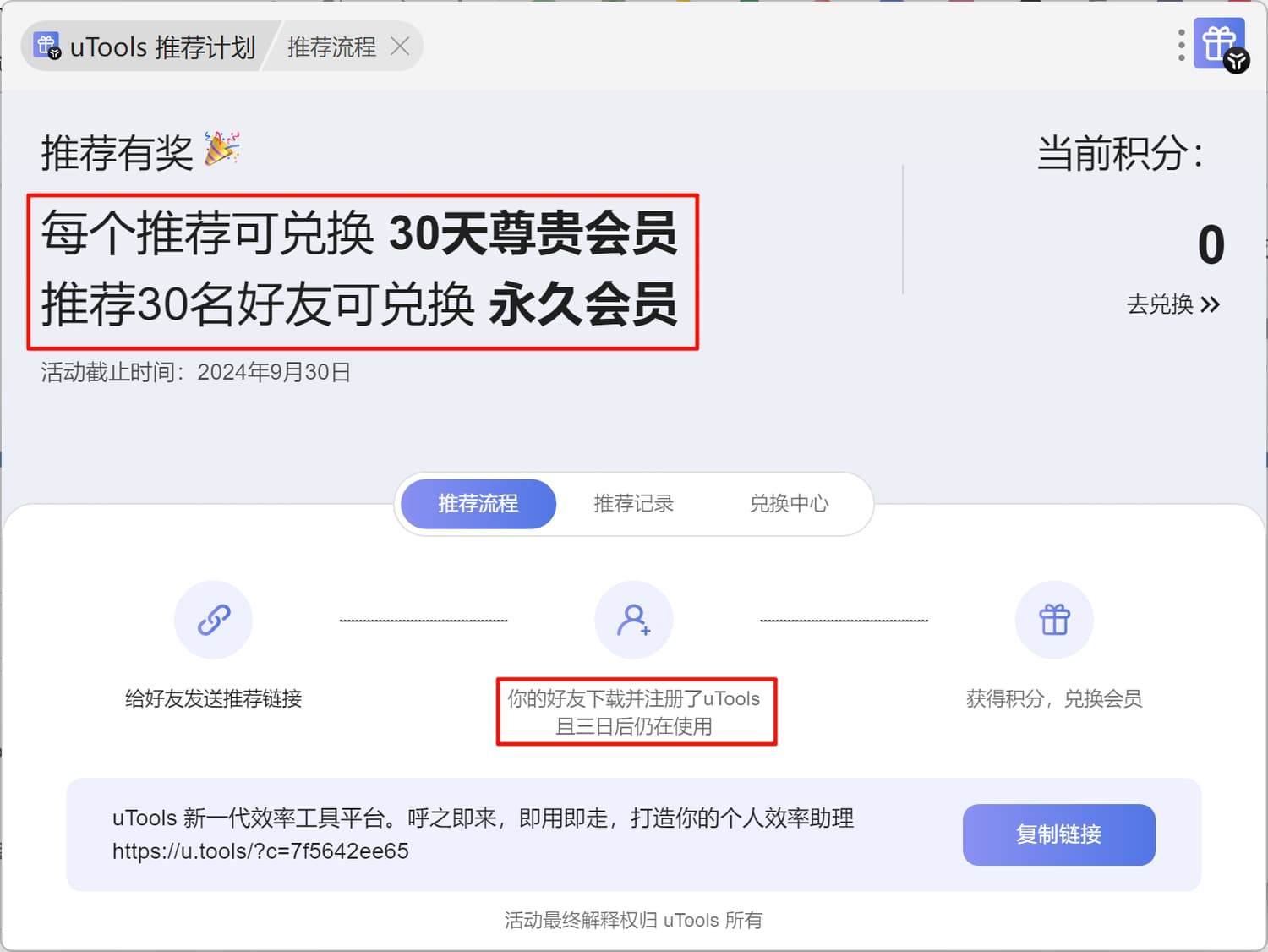 uTool官网永久会员之前就停止出售了,这个活动是目前唯一能够免费获取到永久会员。