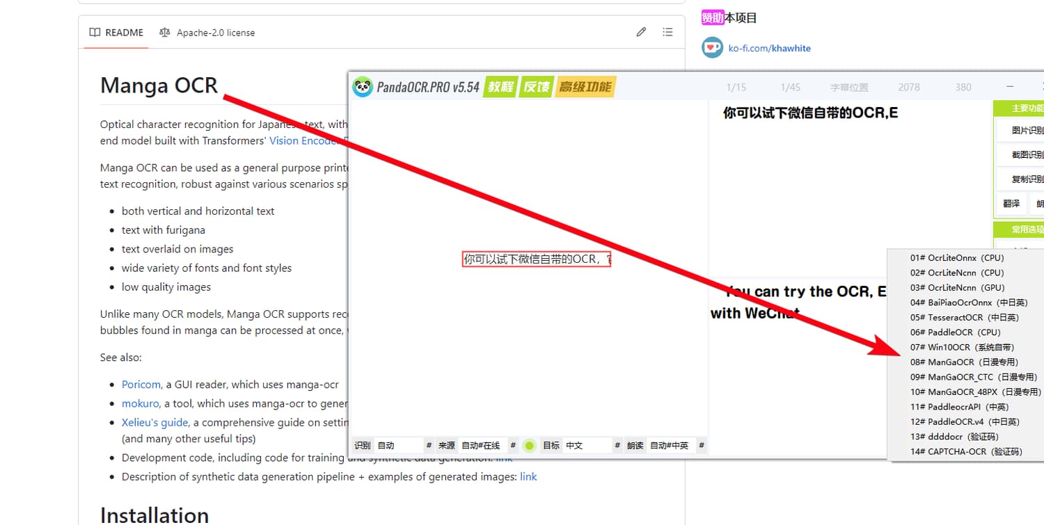 这么多年过去了,还是没有一个兼容日语的中文 OCR 模型。我去 PaddleOCR 问了,说你可以自己训练。可我真不会这个,而日语识别确实刚需 (不要问为啥刚需,我会用一堆神秘代码刺瞎你的眼),当前的模型兼容简繁英,只要再兼容日语,OCR 这块就完全满足了。在线 API 倒都支持多语言混合识别,但一是没钱,二是延迟大。