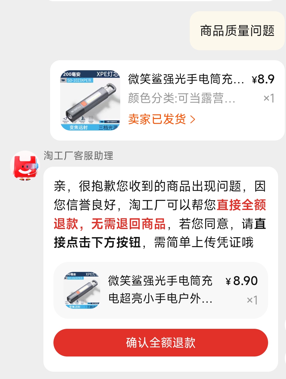 没有人工客服(因为这样成本很高啊),我只有两个选择:认了,或者全额退款。