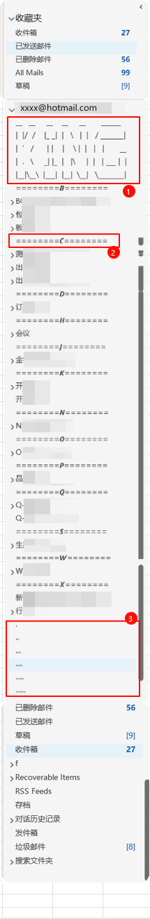- 一些文件夹不能隐藏:例如收件箱,已发送邮件等等,我已经把它们放进收藏夹了,就没有必要在文件夹窗格中显示占位置了,但是我也不能把它们放进一个文件夹中隐藏,所以,它应该用的是系统中的文件夹模式。