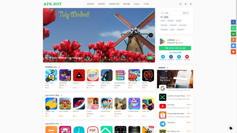 apk是一个绿色无广告免费apk下载站点,设计优美,下载速度快,收录近10w个安卓app应用,热门应用上面都能找到,还有很多谷歌应用商店找不到的app文件