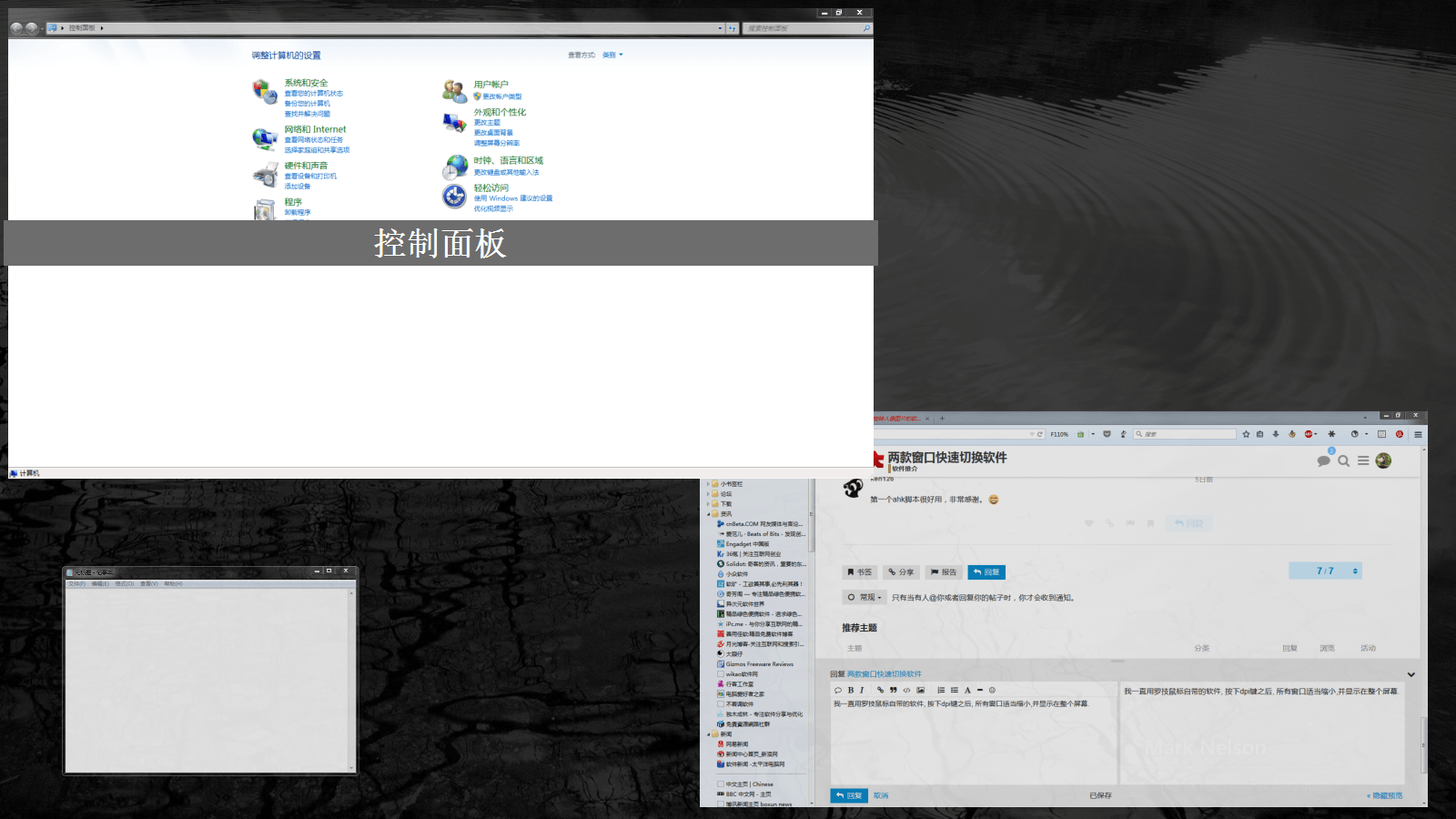 我一直用罗技鼠标自带的软件, 按下dpi键之后, 所有窗口适当缩小,并显示在整个屏幕.